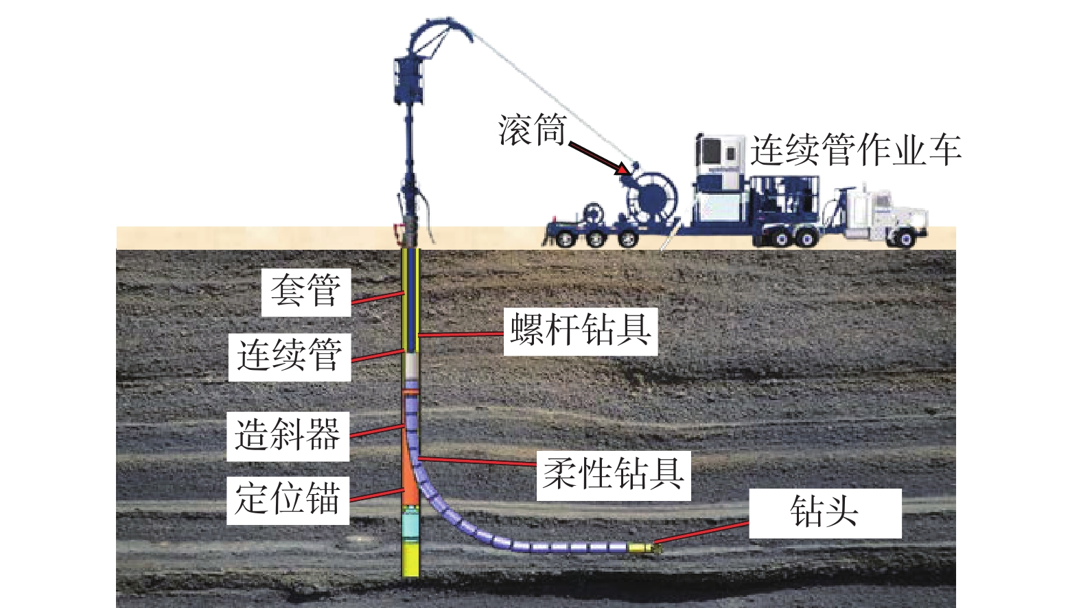Ultra-short radius horizontal wells play an important role in the stimulation of old oil and gas wells and the potential tapping of remaining oil. The commonly used ultra-short radius horizontal drilling technology with flexible bottom hole assembly (BHA), however, faces the problems of long tripping periods and high operation costs. In contrast, coiled tubing drilling tools feature high drilling efficiency with low costs and are safe and reliable. Hence, this study combined the advantages of coiled tubing and flexible BHA and developed key tools for ultra-short radius horizontal drilling, including large-torque positive displacement motors (PDM) at high and low rotary speed, optimized flexible BHA, stacking whipstock and build-up PDC bit, etc. Moreover, supporting operation processes were optimized. As a result, the ultra-short radius horizontal drilling technology combining coiled tubing and flexible BHA was preliminarily developed. The technology was first applied in a field test in Well Ling 72-5CZ of Jianghan Oilfield, and an ultra-short radius horizontal lateral well of 30.21 m was drilled, with an average rate of penetration of 0.8 m/h. The trajectory was in good agreement with the designed one, and the horizontal section has an average inclination angle of 88.17°. The field test results verify that the ultra-short radius horizontal drilling technology combining coiled tubing and flexible BHA is feasible, and it can provide a new technology for the potential tapping of remaining oil and efficient development of low-permeability oil fields.