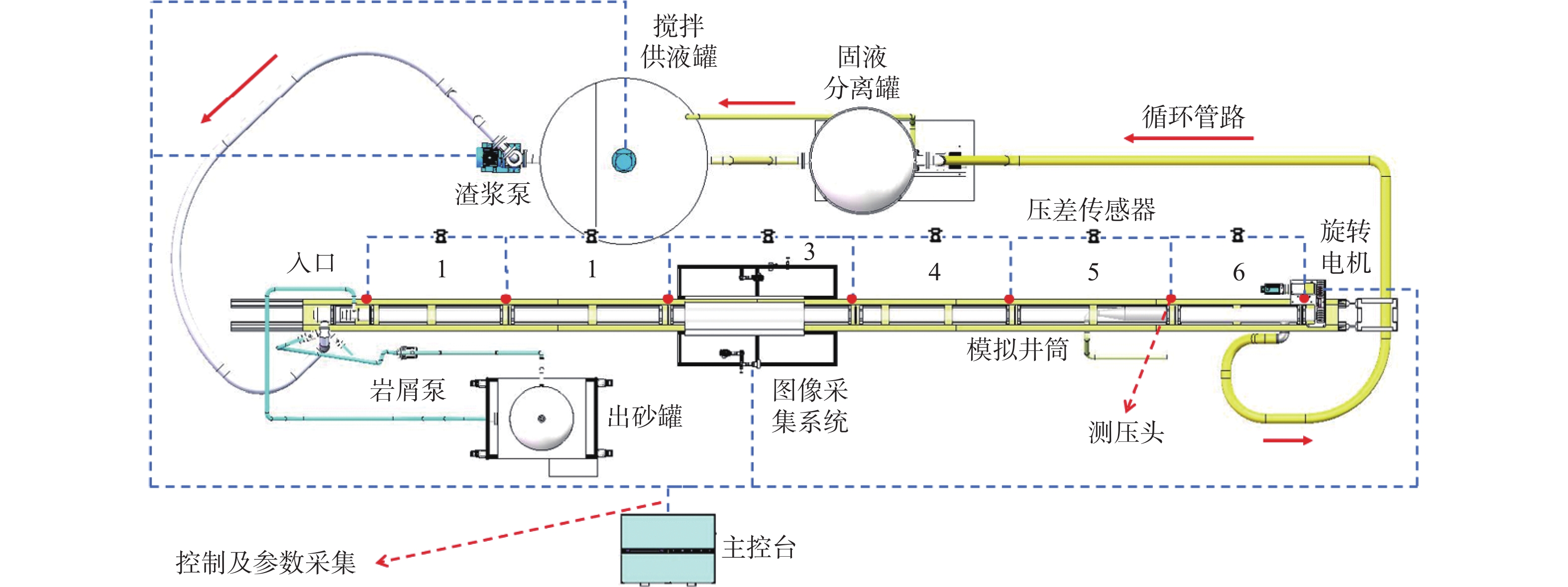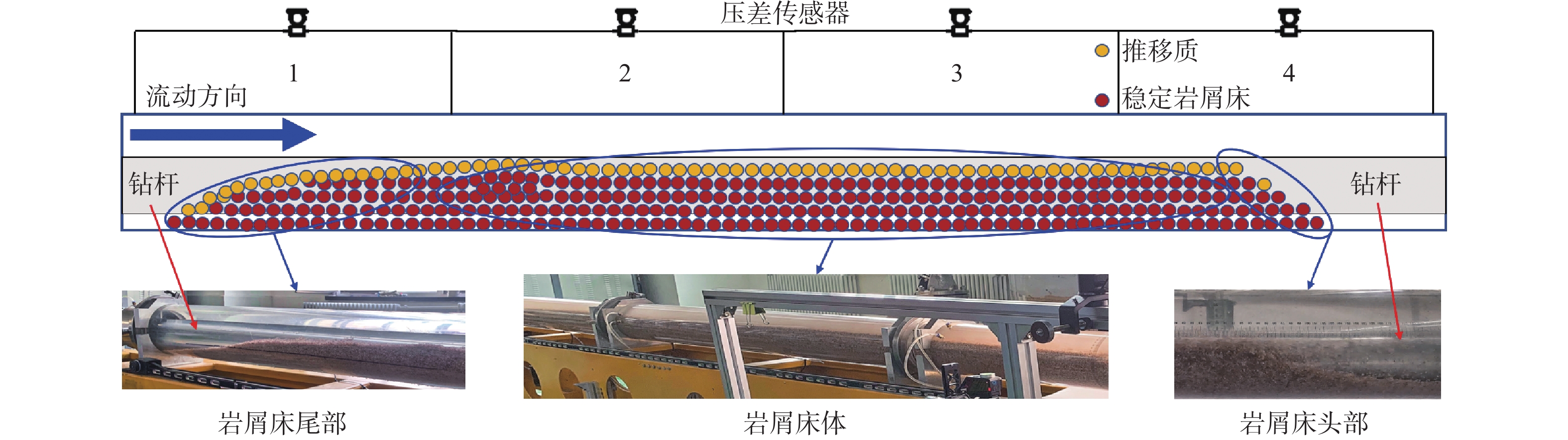 To investigate the axial transport law of cuttings bed in the horizontal section of long horizontal wells during rotary drilling, cuttings transport experiments of horizontal wells were conducted based on the differential pressure method. This method utilized differential pressure sensors located at different axial positions in the wellbore to measure the instantaneous pressure drop in the wellbore. These data were used to characterize the axial distribution of cuttings bed in the wellbore and calculate the cuttings bed transport velocity. The impact of fluid density, flow rate, and drill pipe rotation speed on the cuttings bed transport velocity and pressure drop was analyzed. The results indicate that this method effectively describes the characteristics of cuttings bed transport and accurately depicts the axial distribution of cuttings bed within a wellbore. Cutting bed transport velocity is positively correlated with fluid density, flow rate, rotary speed. Increasing the flow rate significantly improves the cuttings bed transport velocity, although a rapid rise in pressure drop limited the maximum flow rate. Increasing the rotary speed can significantly improve the cuttings bed transport velocity and has almost no effect on the wellbore pressure drop. The results provide clarification of the axial transport law of cuttings bed in horizontal wells, providing a theoretical foundation for measuring the axial distribution of downhole cuttings bed and assisting in avoiding the risks of complex wellbore pressure and pipe sticking.