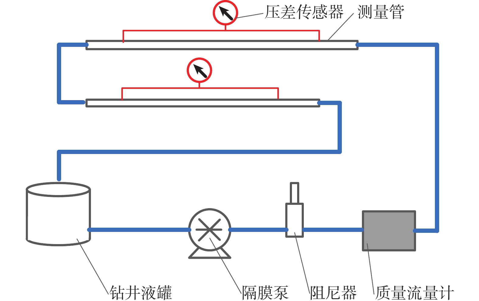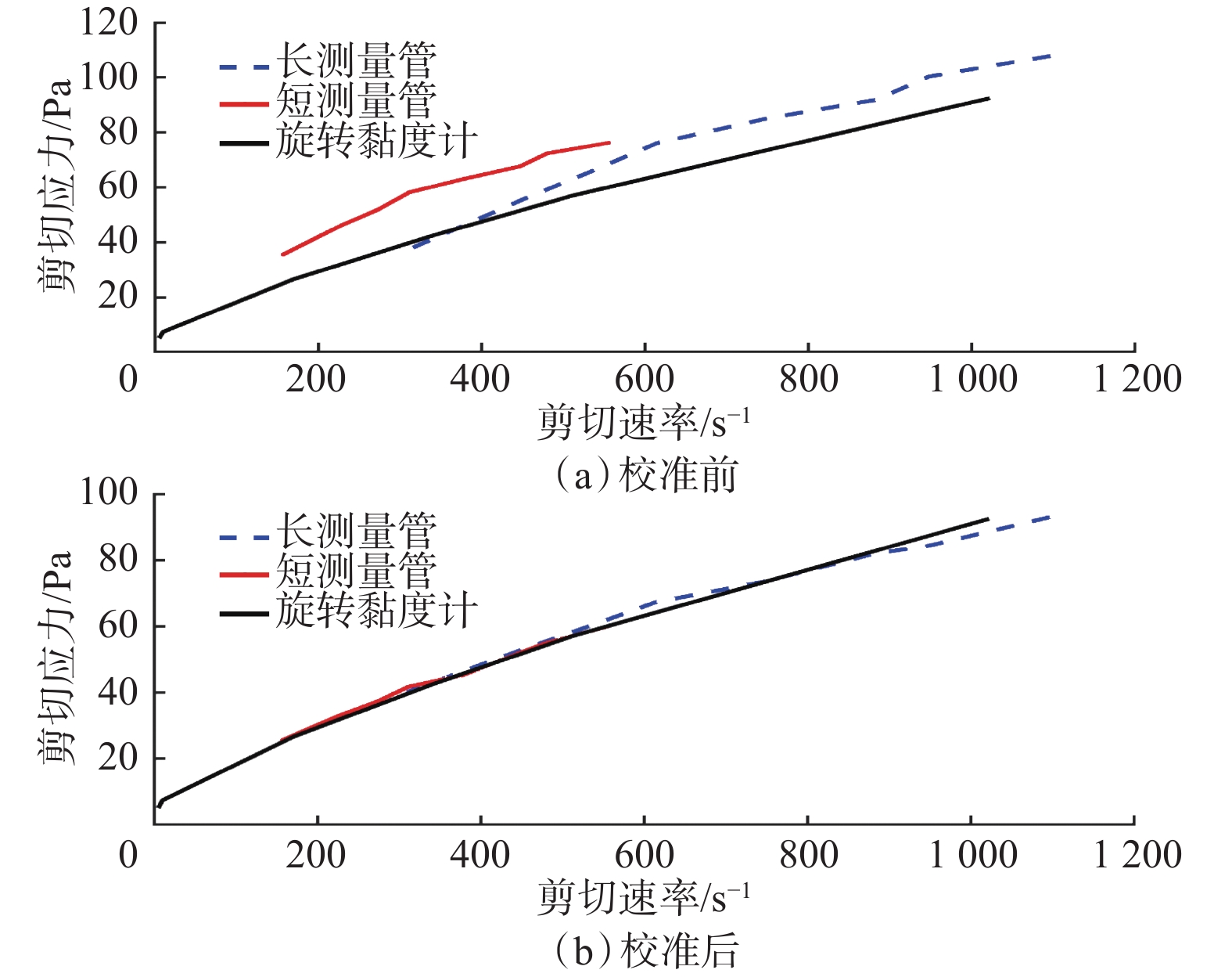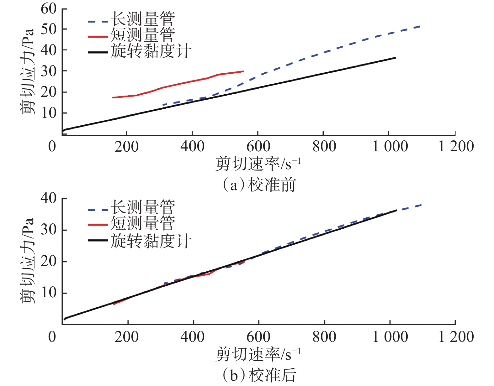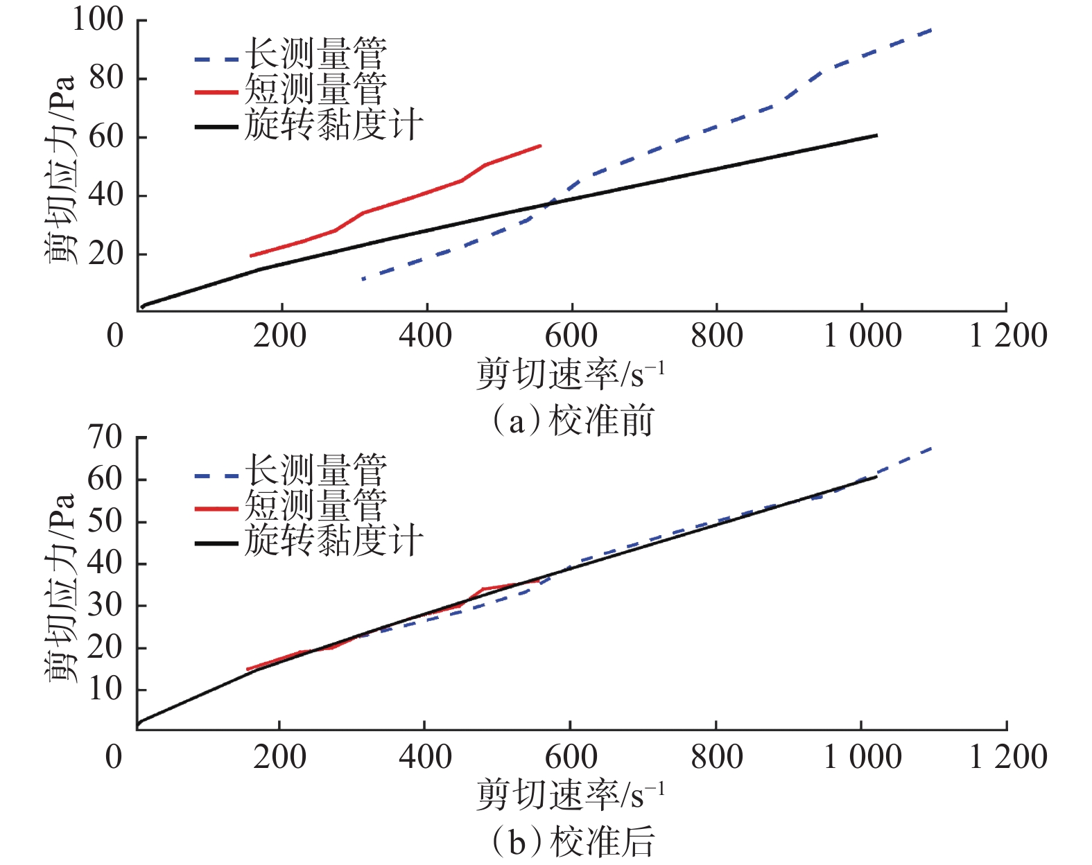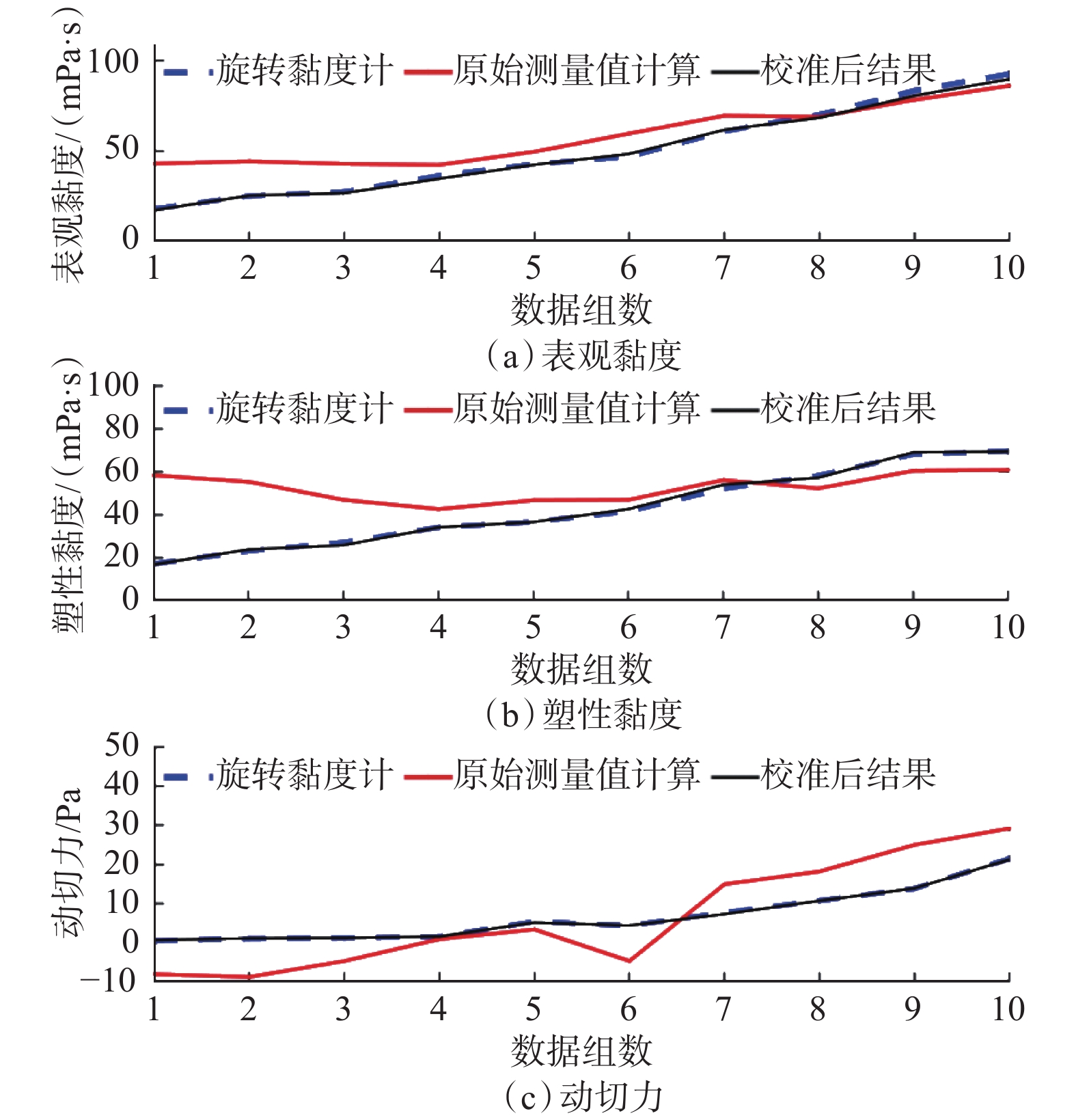 Currently, manual measurement methods such as rotational viscosimeters are mainly used on drilling sites, with long measurement cycles and human interference factors. The existing online measurement devices such as tubular viscometers are affected by factors such as fluid pulsation of the diaphragm pump for extracting drilling fluid, motor vibration, and pressure difference measurement bias error, resulting in poor measurement accuracy and stability. An online calibration method for rheological parameters of drilling fluid based on empirical mode decomposition and maximum likelihood estimation was proposed on the basis of the tubular viscometer of double-tube pressure difference to address the above issues. Firstly, an empirical mode decomposition model was established using measurement data from the pressure difference sensor to extract interference signals caused by diaphragm pump pulsation, motor vibration, and measurement errors, thereby achieving accurate identification of constant current pressure difference signals. Then, a rheological parameter calculation model for the tubular viscometer was established, and the shear stress-shear rate curve of the double tubes was used to establish a calibration model for shear stress parameters of drilling fluid based on the maximum likelihood estimation. Finally, the established online monitoring and testing platform for drilling fluid performance was used for experimental verification. The measurement accuracy of apparent viscosity, plastic viscosity, and dynamic shear force obtained by the proposed online calibration method for rheological parameters was significantly better than that of uncalibrated parameters, and the relative errors of measured apparent viscosity, plastic viscosity, and dynamic shear force were all less than 5%, meeting the requirements of on-site drilling testing. The results show that the method is effective and has high precision, which provides a new way for rapid and accurate measurement of rheological parameters of drilling fluid.