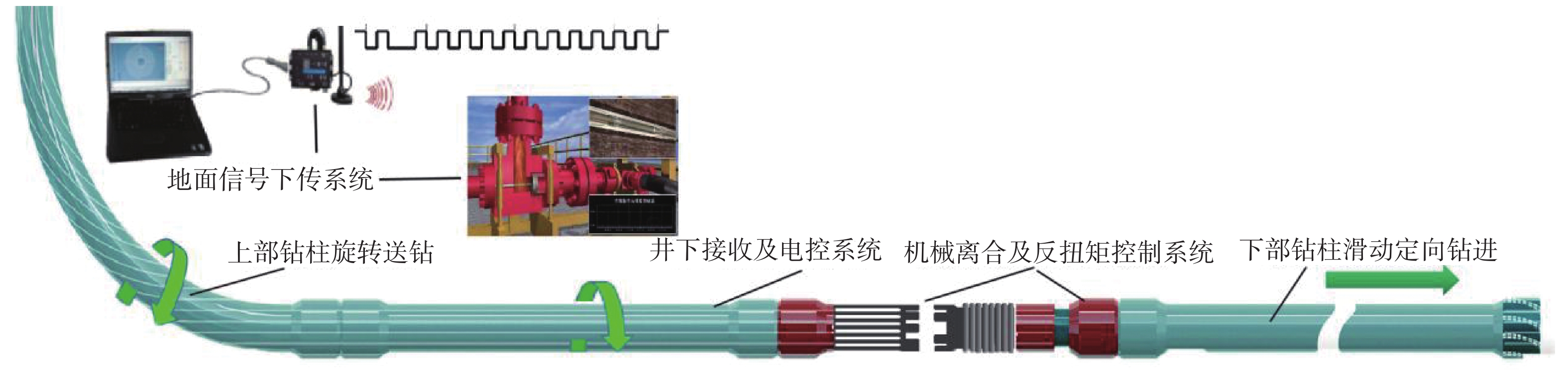 The half-way rotary steerable drilling technology separates the torque of the lower drilling tool from the upper drilling tool so that the upper drill string can be rotated and achieve bit feed at low speed, while the lower drilling tool performs conventional sliding directional drilling. In this way, the trajectory control ability of steerable drilling and the extension ability of horizontal sections can be greatly improved at a low cost. Based on this technology, an electronically controlled half-way rotary steerable drilling tool was developed. The tool was installed near the drill bit end of the drill string of conventional sliding directional drilling. The ground signal transmission device sent a negative pulse sequence command of the drilling fluid. After receiving the command, the tool performed the drill string torque separation and combination actions. It should be pointed out that the control of the anti-torque after torque separation is the key technology of the tool. Usually, the friction torque between the drill string and the well wall is used to counteract the anti-torque, but when the torque surges, the anti-torque cannot be balanced. The electronically controlled half-way rotary steerable drilling tool can effectively resist the anti-torque and stabilize the tool face by adding an anti-torque-resistant stabilizer and a torque absorption and energy storage assembly. The field tests results of four wells with the electronically controlled half-way rotary steerable drilling tool applied show that the tool can greatly alleviate the support pressure, reduce friction and drag, and improve the transmission efficiency of weight on bit (WOB). The tool has the ability to control the anti-torque. After the torque is separated, the tool face remains stable, and the rate of penetration (ROP) is improved. Therefore, the tool can be widely promoted and applied.