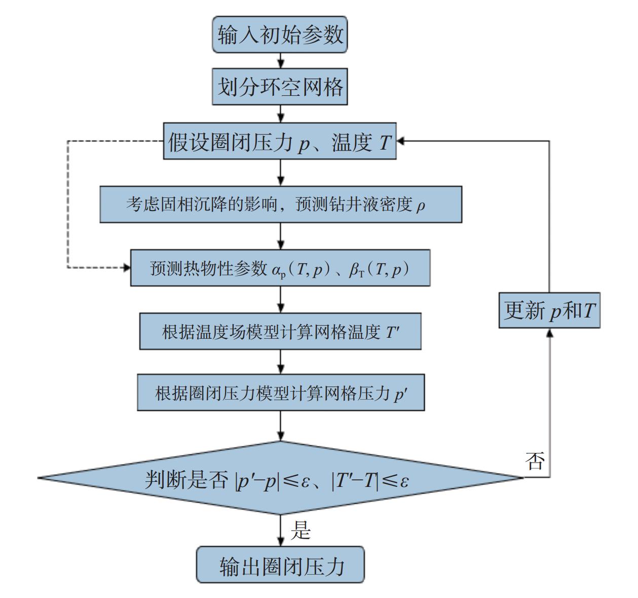 During the exploitation of deepwater oil and gas wells, because of the particularity of the subsea wellhead, the thermal expansion of high temperature fluid in the wellbore causes the increase in annular trapping pressure, which leads to casing collapse and seriously threatens the wellbore integrity of oil and gas wells. Based on the law of constant volume thermodynamics and the mass balance principle in annular fluid, the influence of solid sedimentation of drilling fluid on the annular volume was considered, and a calculation model of multi-annular coupling trapping pressure in deepwater wells was proposed. The sedimentation laws and fluid thermophysical parameters of the commonly used drilling fluid systems were tested, and the influence of sedimentation time on the density, isothermal compression coefficient, and isobaric expansion coefficient of drilling fluid was obtained. By taking a gas production well in the South China Sea as an example, the annular trapping pressure of the wellbore was iteratively solved through the discrete grid method, and the factors affecting the annular trapping pressure were analyzed. The results show that solid sedimentation has a significant impact on the density of drilling fluid. With the increase in sedimentation time, the density of drilling fluid shows a significant downward trend. After 10 days of testing, the solid sedimentation of drilling fluid tends to stabilize. With the increase in sedimentation time, the variation range of the trapping pressure in annular space A is relatively small, while the increase range of the trapping pressure in annular space B and C is relatively large. The annular trapping pressure is positively correlated with the gas production volume, ground temperature gradient, Poisson’s ratio, and isobaric expansion coefficient and negatively correlated with the isothermal compression coefficient. The research results show that considering the influence of solid sedimentation can improve the accuracy of annular trapping pressure prediction, providing a theoretical basis for the selection of pipe strings and the design of production parameters in deepwater wells.