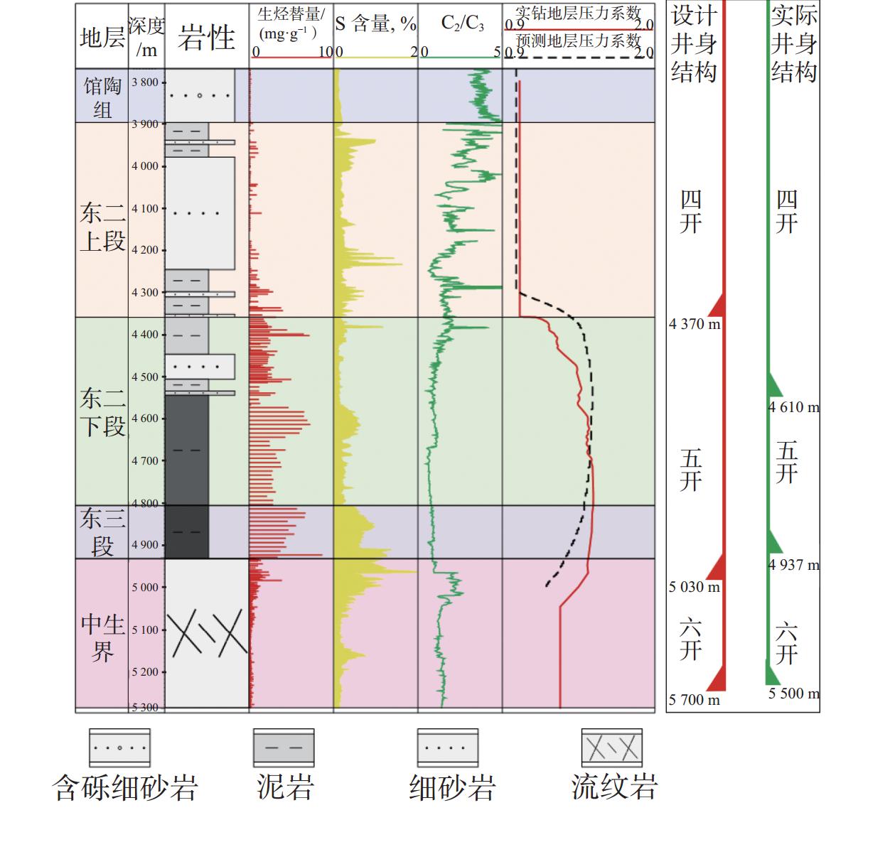 The geology of the deep buried hills in the Bozhong Sag of the Bohai Bay Basin are complex, with deep burial of the target layer, multiple geological layers encountered during drilling, complex and variable lithology, and significant changes in the formation pressure system. During the drilling process, complex situations frequently occur, and weak layers are prone to leakage, which affects the exploration and development process. By predicting the risk of wellbore leakage before drilling, correcting formation pressure, making scientific decisions in the high-pressure section during drilling, accurately capturing the buried hill interface, and identifying and controlling the formation pressure of the buried hill while drilling, the drilling design and adjustment plan optimization during drilling were achieved, and an integrated geological engineering technology for the whole process of deep high-pressure wells in the Bozhong Sag was established. After the application of the integrated geological engineering technology throughout the whole process in 20 deep high-pressure exploration wells in Bohai Oilfield, the drilling complexity was reduced by 60%, and the processing time for complex situations such as wellbore leakage and overflow was reduced by 40%. The accuracy of identifying buried hill interfaces was 100%, and the cost of a single well was reduced by more than 30 million yuan. The integrated geological engineering technology for the whole process provides a technical approach for deep and ultra-deep exploration and development of Bohai Oilfield, and it has good application prospects.
