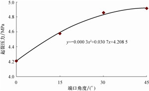 | 图 2 端口角度对起裂压力的影响 Fig. 2 Effect of angular port on fracture initiation pressure |