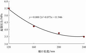 | 图 3 端口长度对起裂压力的影响 Fig. 3 The effect of the end length of port on fracture initiation pressure |