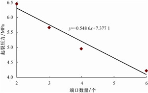 | 图 4 端口数量对起裂压力的影响 Fig. 4 The effect of port quantity on fracture initiation pressure |