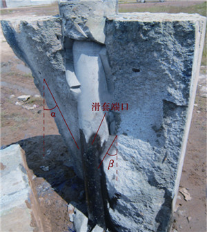 翼型端口及0°槽型端口沿端口方向产生周向应力集中,且固井水泥环脆性较强,因此裂缝由端口处起裂后迅速扩展形成了2条较大的单一对称裂缝(见图 6)。对于带角度的端口,由于水泥环在沿端口角度方向产生周向应力集中,因此试验样本破裂后,裂缝沿端口角度方向扩展,在多个角度方向上形成了至少2个裂缝面的裂缝(见图 7)。以上分析可知,角度为0°的端口有利于生成较宽的单一对称裂缝。