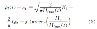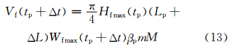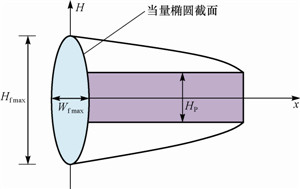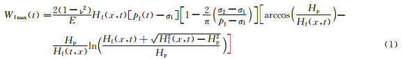 1.2 续流阶段关井初期,由于缝内压力较高,裂缝在高度和长度方向上还要延伸一段距离,该距离除与施工压力有关外,还与地层性质有关。由于延伸时间一般较短,可以假定在此期间井底最大缝高Hf max(tp)不变,高度分布仍为椭圆形,且以椭圆形向前延伸。