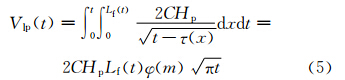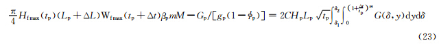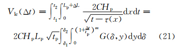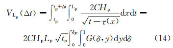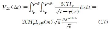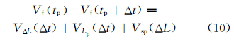 设停泵后延伸时间为Δt,单翼裂缝延伸的长度为ΔL,停泵时缝长为Lp,根据缝内体积平衡理论,在续流过程中,一部分压裂液在Lp段继续向地层滤失,另一部分压裂液由于裂缝继续延伸而造成裂缝体积增大,同时延伸段ΔL还存在压裂液的初滤失和滤失。裂缝内有如下体积平衡关系: