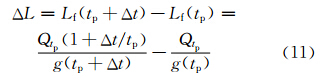 在Δt时间内,停泵初期的裂缝扩展和注入期间一致,即假设总注入量稳定增加,由式(9)可得ΔL: