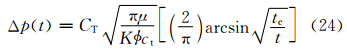 设裂缝闭合时间(自注入开始时刻起)为t2,t1=tp+Δt,则: