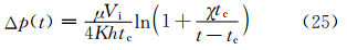 | 图 2 裂缝闭合后的压力递减曲线 Fig. 2 Curve of predicted pressure decline after fracture closure |