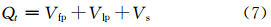 续流结束后,裂缝的闭合受滤失控制,考虑支撑剂的体积,此时缝内流体的体积平衡式为: