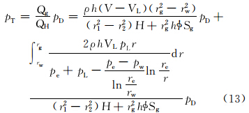 根据煤储层任意一点的压力、最大解吸半径及兰氏方程,可以计算出煤层气井憋压阶段的储层解吸气量:
