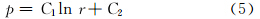 式中:r为地层排水影响半径范围内的任意一点距井筒中心的距离,m;p为距井筒中心距离为r处的储层压力,MPa;C1和C2为通式系数。