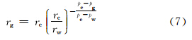 当憋压阶段排水影响半径达到最大影响半径时,边界的压力为原始储层压力,则影响半径范围内有一点处的压力为临界解吸压力,此处距井筒中心的距离即为最大解吸半径,即: