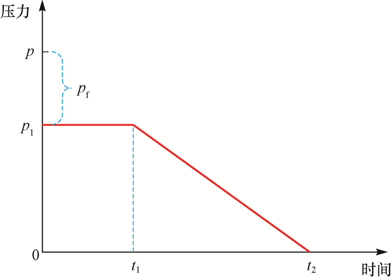 根据以上计算式可计算出不同时间下的井口回压,绘制成井口回压变化曲线(见图1,t2=t1+t′2)。
