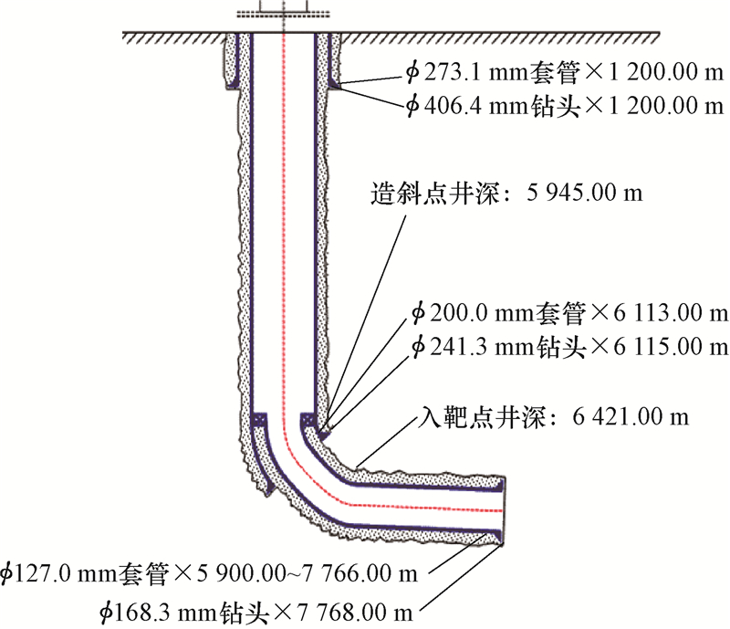 3.1 井身结构例井的井深为7 768.00 m,造斜点井深为5 945.00 m,井身结构如图6所示。