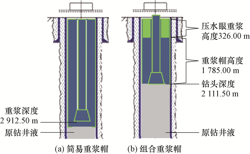 若不考虑压水眼重浆的影响,可将简易重浆帽高度设计为2 912.50 m,其与组合重浆帽高度设计对比情况如图8所示。