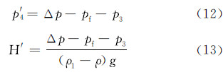经t′4后,压水眼重浆开始沿环空上返(见图3),其在环空也产生附加压力,当该部分重浆完全进入环空时,井口压力为:
