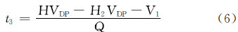 将上述各数据代入式(4)、(5)和(12),可得t3=1.9 min,t′4=1.1 min,t′6=45.6 min;测得pf=0.90 MPa,p1=3.10 MPa,p3=2.07 MPa。