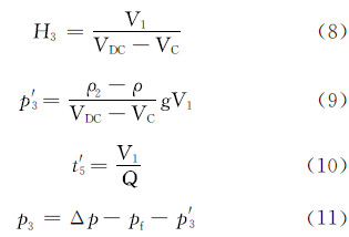 经t′5后,压水眼重浆全部进入环空,此时重浆开始上返(见图4),则重浆帽需要在环空附加的压力、上返高度及所需时间都可确定: