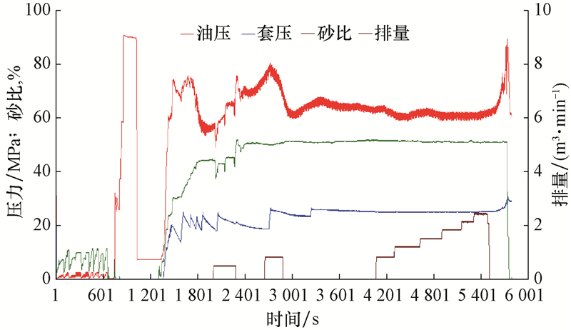 | 图 5 BSH68井压裂施工曲线 Fig. 5 Hydraulic fracturing treatment curve of Well BSH68 |
