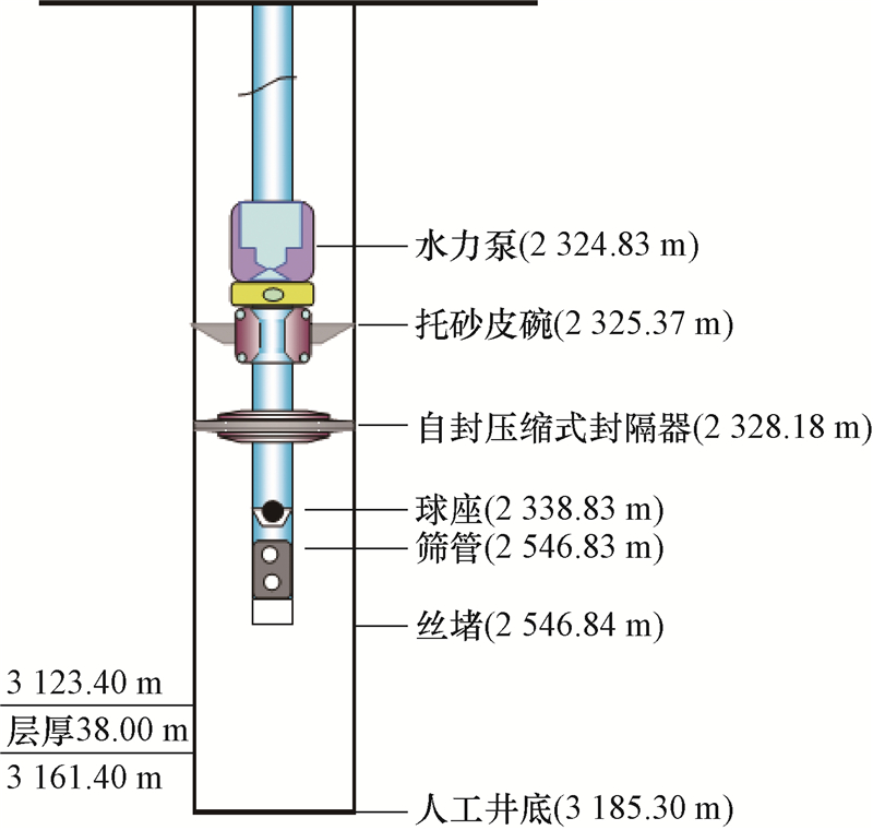 | 图 6 ZH8ES-L18井水力泵排液管柱 Fig. 6 Drainage pipe string of hydraulic pump for Well ZH8ES-L18 |
