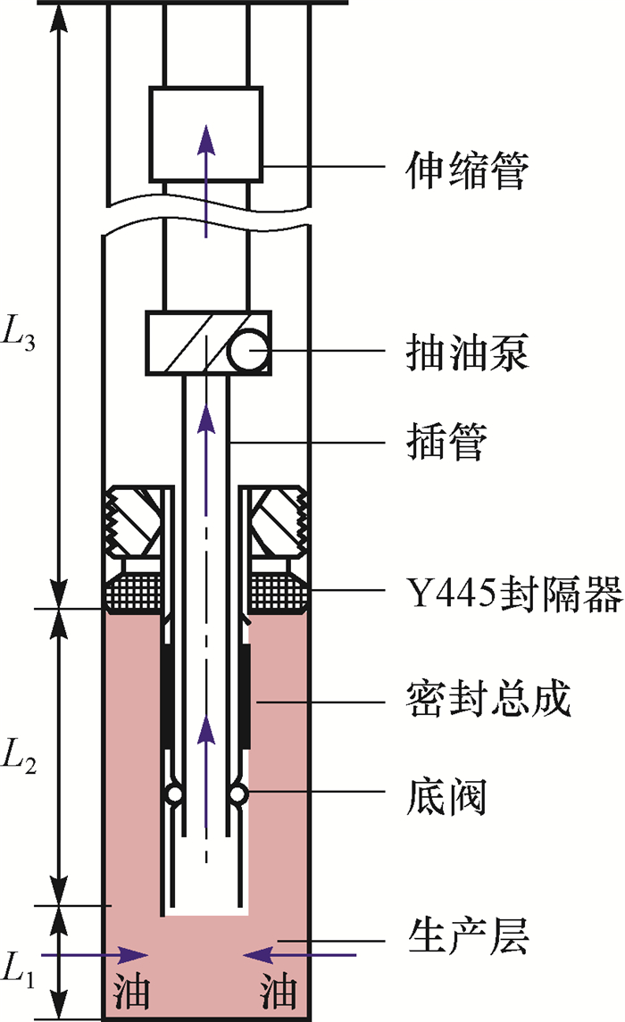 由于环空导热系数低于流体导热系数,较大的环空长度能减少流体热量损失,因此现场采用封隔器限制动液面深度,以增加环空长度(封隔器位置即实际动液面位置)。将井筒自下而上分为3段,各段的传热过程不同,传热系数也均不相同,从而导致热损失有差异。图 1为东辛油田Y12X2X3井井筒分段示意图(L1段的传热包括套管流体对流传热、套管壁导热和水泥环导热;L2段的传热包括油管流体对流传热、油管壁导热、环空液体传热、套管壁导热和水泥环导热;L3段的传热包括油管流体对流传热、油管壁导热、环空气体传热、套管壁导热和水泥环导热)。
