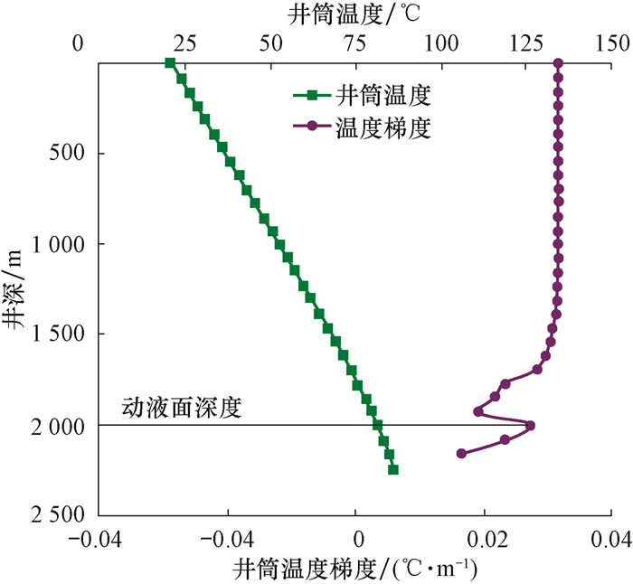 | 图3 井筒温度场曲线与井筒温度梯度曲线 Fig.3 Wellbore temperature curve and wellbore temperature gradient curve |