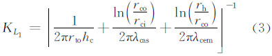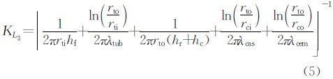L1,L2和L3段传热系数KL1,KL2和KL3的计算式为: