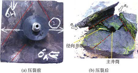 | 图4 2号试样压裂前后对比 Fig.4 Comparison of No.2 sample before and after fracturing |
