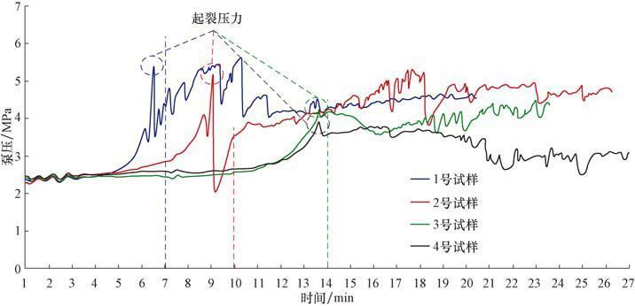 | 图5 4块试样压裂曲线 Fig.5 Fracturing curves of 4 rock samples |