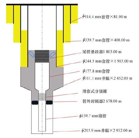 X井设计为四开井身结构,目的层段采用筛管完井,目的层段以上采用尾管固井。该井三开