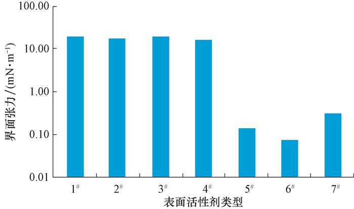 | 图 2 不同种类表面活性剂对界面张力的影响 Fig.2 Effects of different surfactants on interfacial tension |