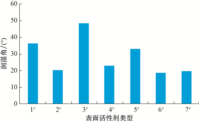 | 图 3 不同种类表面活性剂对润湿角的影响 Fig.3 Effects of different surfactants on wetting angle |