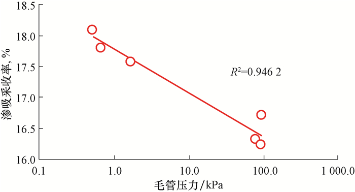 | 图 5 渗吸采收率与毛管压力的关系 Fig.5 Relationship between imbibition recovery rate and capillary pressure |