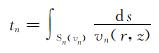 式中:Sn(vn)为依赖于地层速度模型vn(r, z)的声波传播的最短路径。
