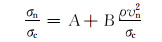 式中:σn为粒子冲击过程中受到的表面法向应力,Pa;σc为岩石的抗压强度,Pa;vn为空腔膨胀速度,即粒子表面法向速度,m/s;ρ为岩石的密度,kg/m3;A和B为反映岩石材料本构特征的常数。