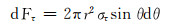 对粒子冲击过程受力分析可得,作用在粒子微元面上的法向阻力为: