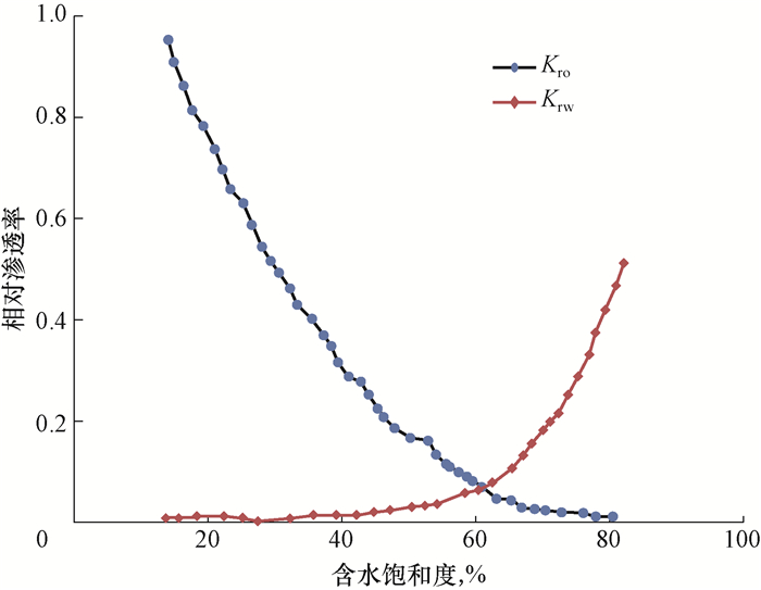 | 图 2 塔河油田典型相对渗透率曲线 Fig.2 Typical relative permeability curves in Tahe Oilfield |