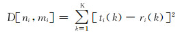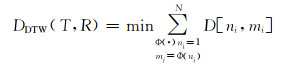 式中:m和n分别为第R号和第T号音频样本的帧编号;K和k分别为参数总维度和维度编号;ri(k)和ti(k)分别为R号样本和T号样本的参数;ϕ为从(1,1) 到(N,M)、斜率范围为1/2~2的路径;i为路径节点编号;D为欧式距离。