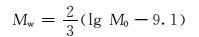 一般情况下,采用矩震级来表示地震矩的大小。与里氏震级相似,矩震级本质上是地震矩的对数。根据T.C.Hanks等人[14]的定义,矩震级与地震矩之间的关系为: