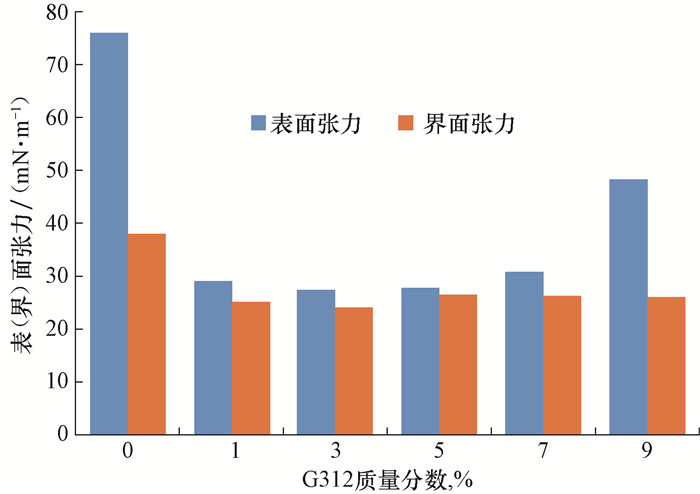 | 图 2 不同质量分数G312溶液的表/界面张力 Fig.2 Surface / interfacial tension of G312 solution with different mass fraction |