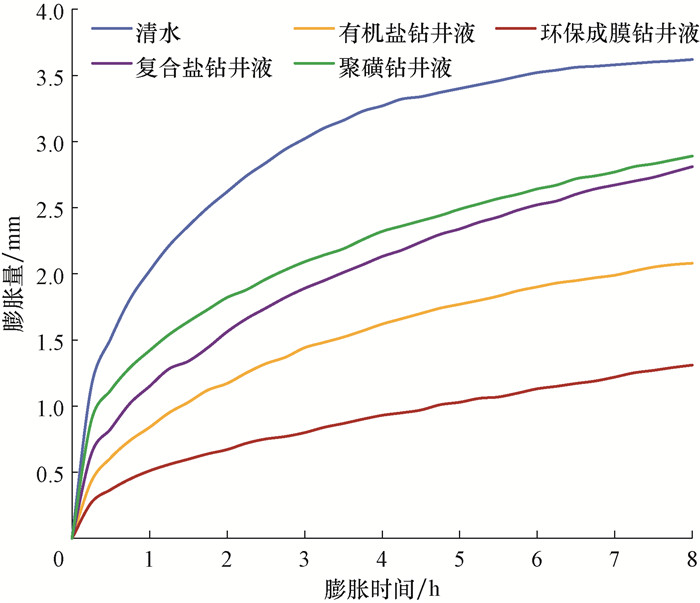 | 图 3 岩心在不同钻井液中的线性膨胀量试验结果 Fig.3 Linear expansion rate test results of cores in different drilling fluid systems |