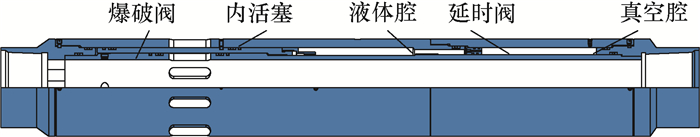 2.1 趾端延时滑套趾端延时滑套是一种通过液压控制开启的压裂滑套,主要由爆破阀、内活塞、液体腔、延时阀和真空腔等部分组成,如图 2所示。