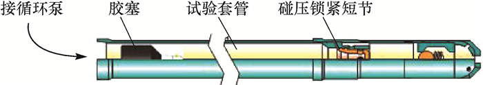 将胶塞装入试验套管内,然后组装密封锁紧座性能试验管柱(见图 8),进行密封锁紧座性能试验。