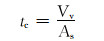 式中:tc为套管试压时间(即滑套延时时间),min;Vv为延时滑套内套打开时液体腔内排出液体的体积,mL;As为延时阀的流量参数,mL/min。