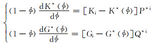 式中:ϕ为孔隙度;Ki和Gi分别为孔隙内成分或包裹体的体积模量和剪切模量,GPa;K*和G*分别为考虑基质矿物及孔隙组分的等效体积模量和等效剪切模量,GPa;P*i和Q*i分别为等效体积模量和等效剪切模量的激化因子。