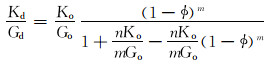 式中:Kd和Ko分别为干岩石和基质矿物的体积模量,GPa;Gd和Go分别为干岩石和基质矿物的剪切模量,GPa。